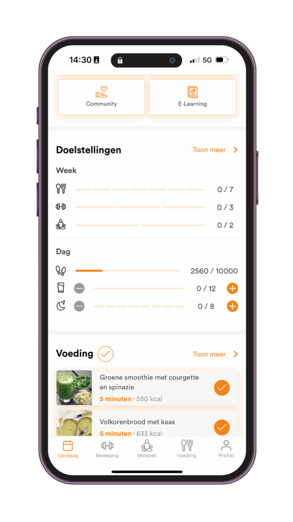 Wil je zelfstandig aan de slag, maar wel met houvast? De Portie Passie app is jouw digitale coach. Inclusief persoonlijke schema’s, voedingsplannen, voortgangsmetingen en e-learnings.